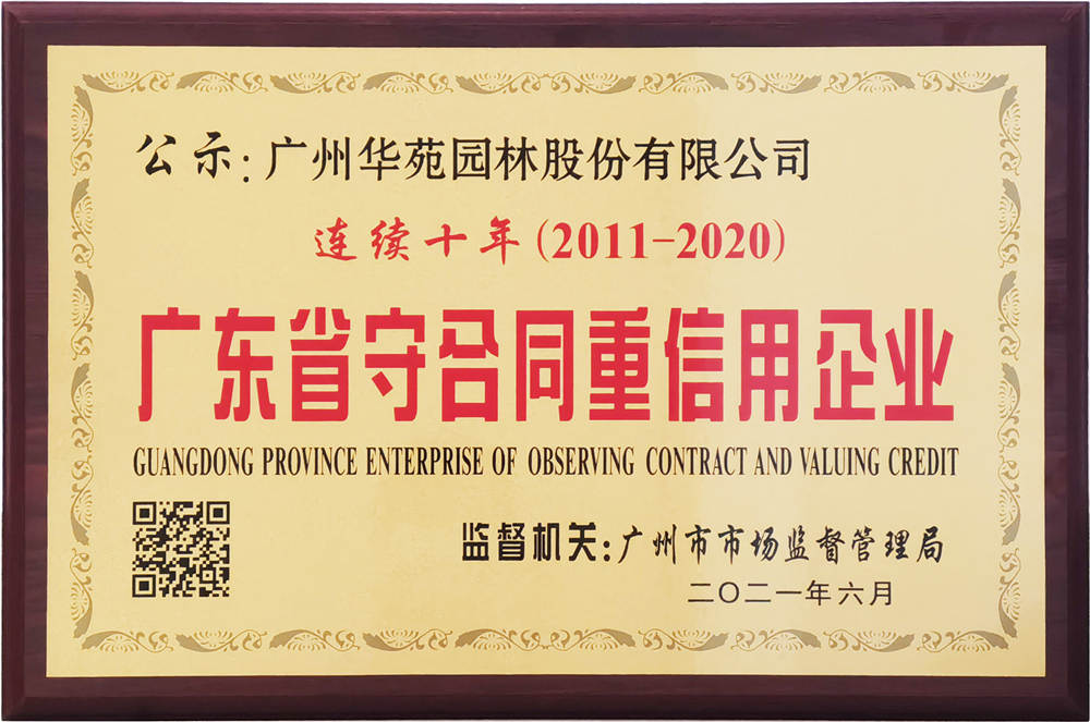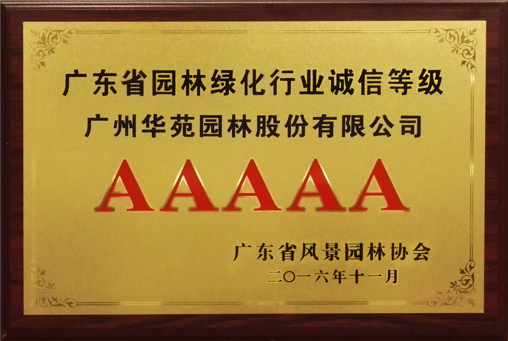 廣東省園林綠化行業(yè)誠信等級AAAAA(2014-2020年)