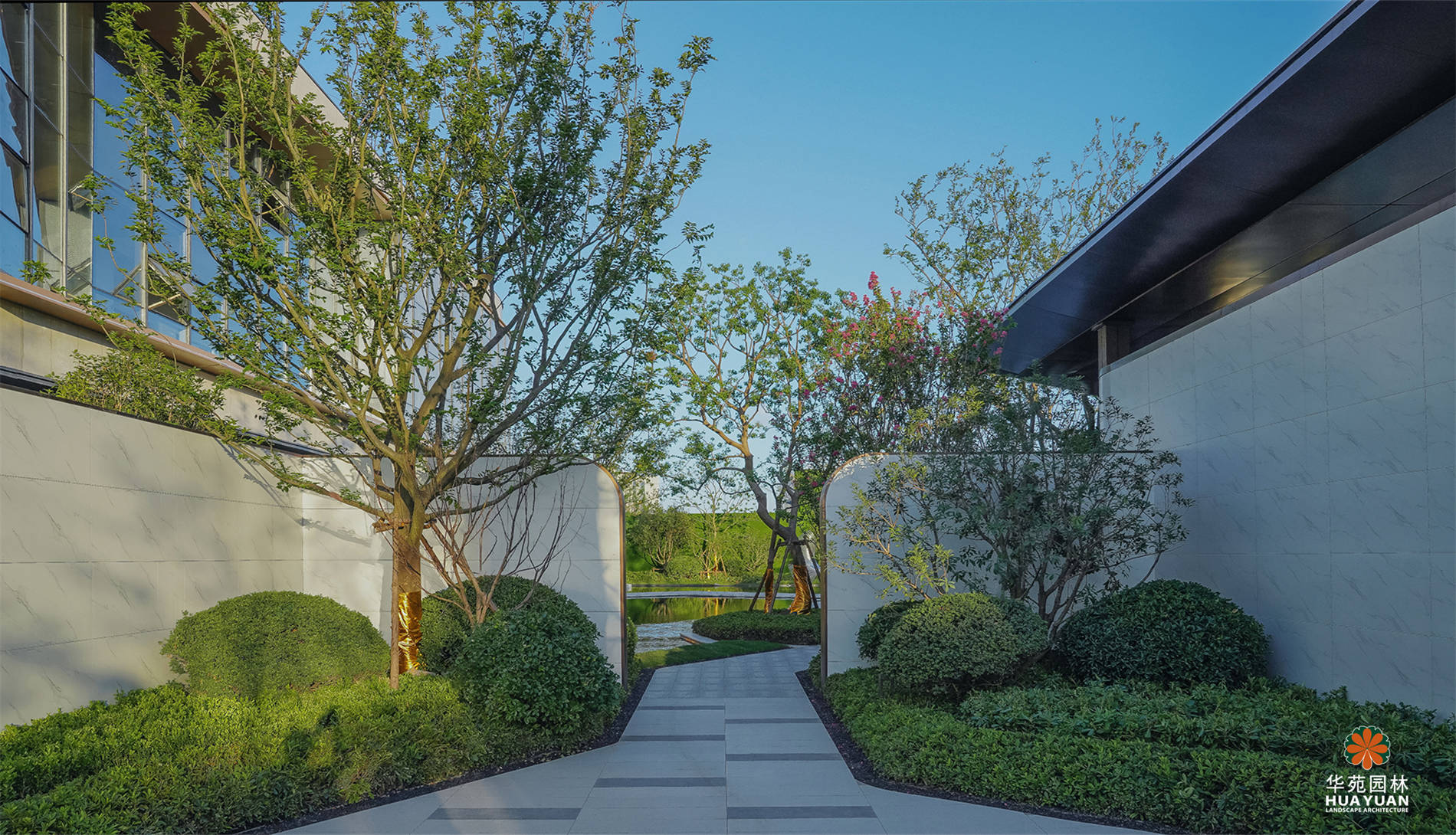項(xiàng)目以揚(yáng)州江都文化為底蘊(yùn),“國際江都、東方六境”為主題,打造“尋幽探徑”、“錦屏引玉”、“飛流扣門”、“山嵐煙渡”、“月洞逐影”、“春江花月”六重雅境, 形成清雅、簡約的現(xiàn)代景觀空間。