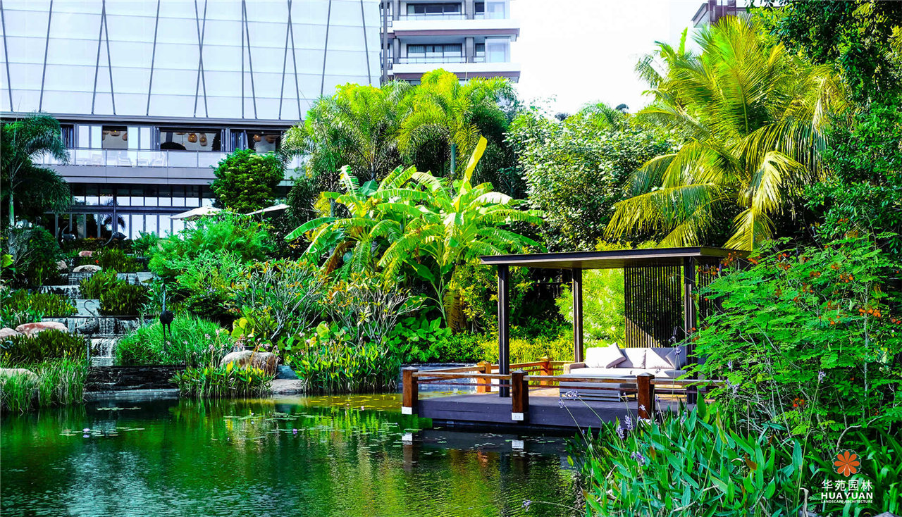 國(guó)家海岸景區(qū)的璀璨明珠,坐擁南中國(guó)海的瑰麗景色;獨(dú)具民俗風(fēng)情的小品、藝術(shù)鋪裝,裝點(diǎn)于園林之中,個(gè)性而不失精致;多層疊級(jí)氣勢(shì)水景,流水自頂部跌落,霧氣氤氳而出,與曲折連橋、特色水榭、豐沛綠植,構(gòu)建出“雖由人作,宛自天開”的自然景致。