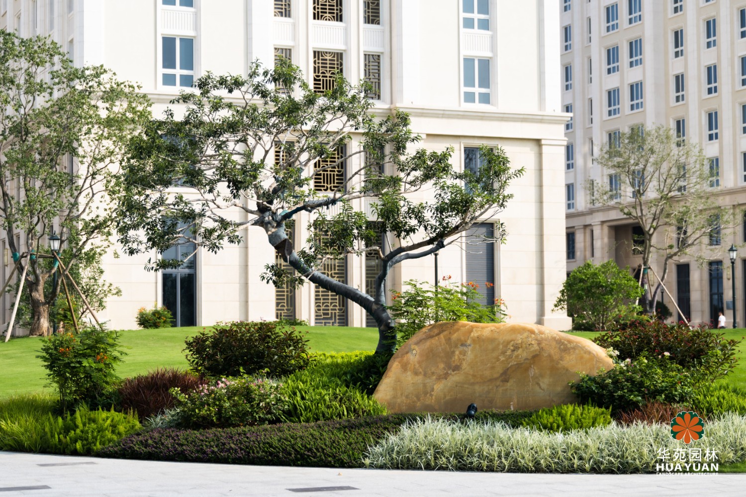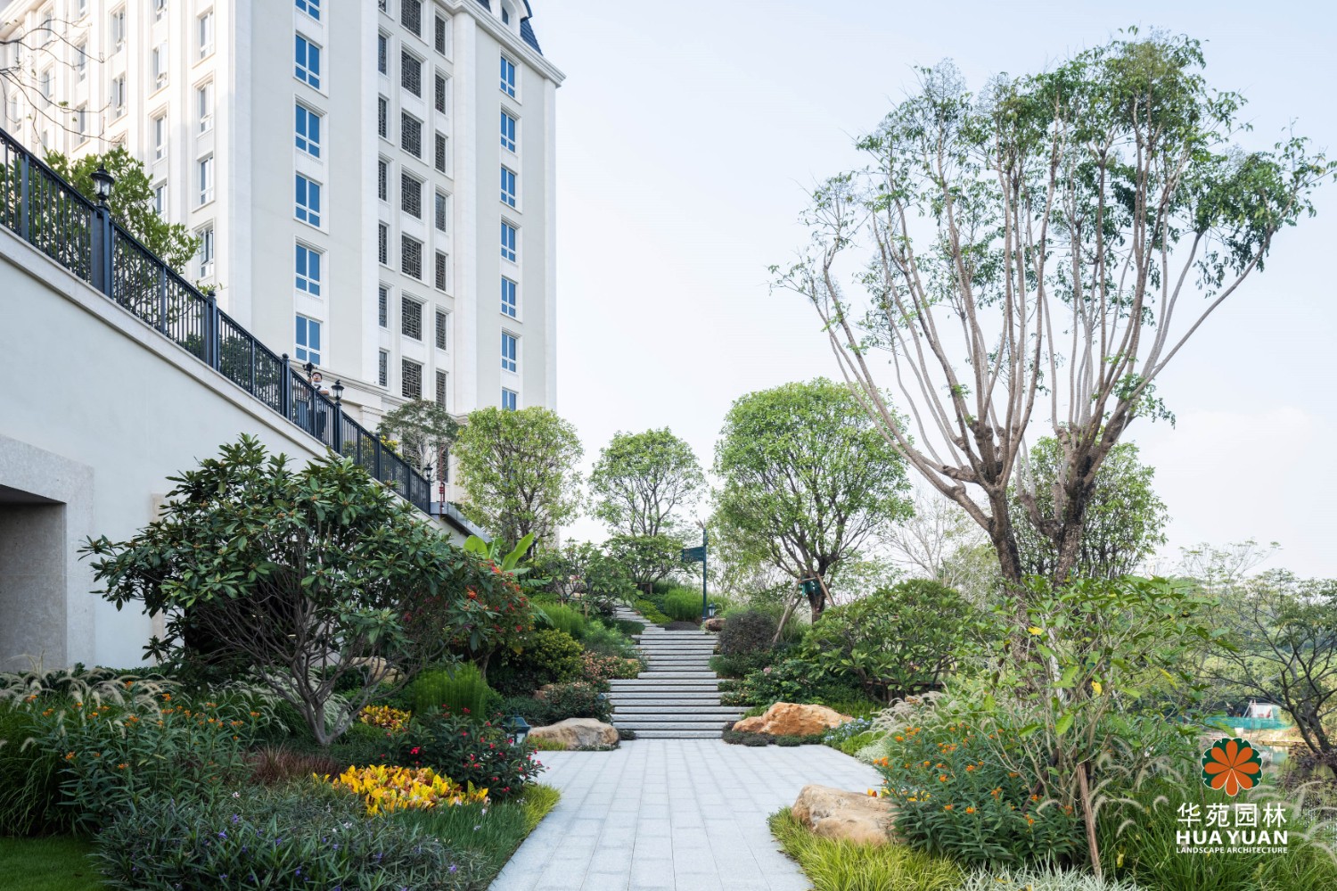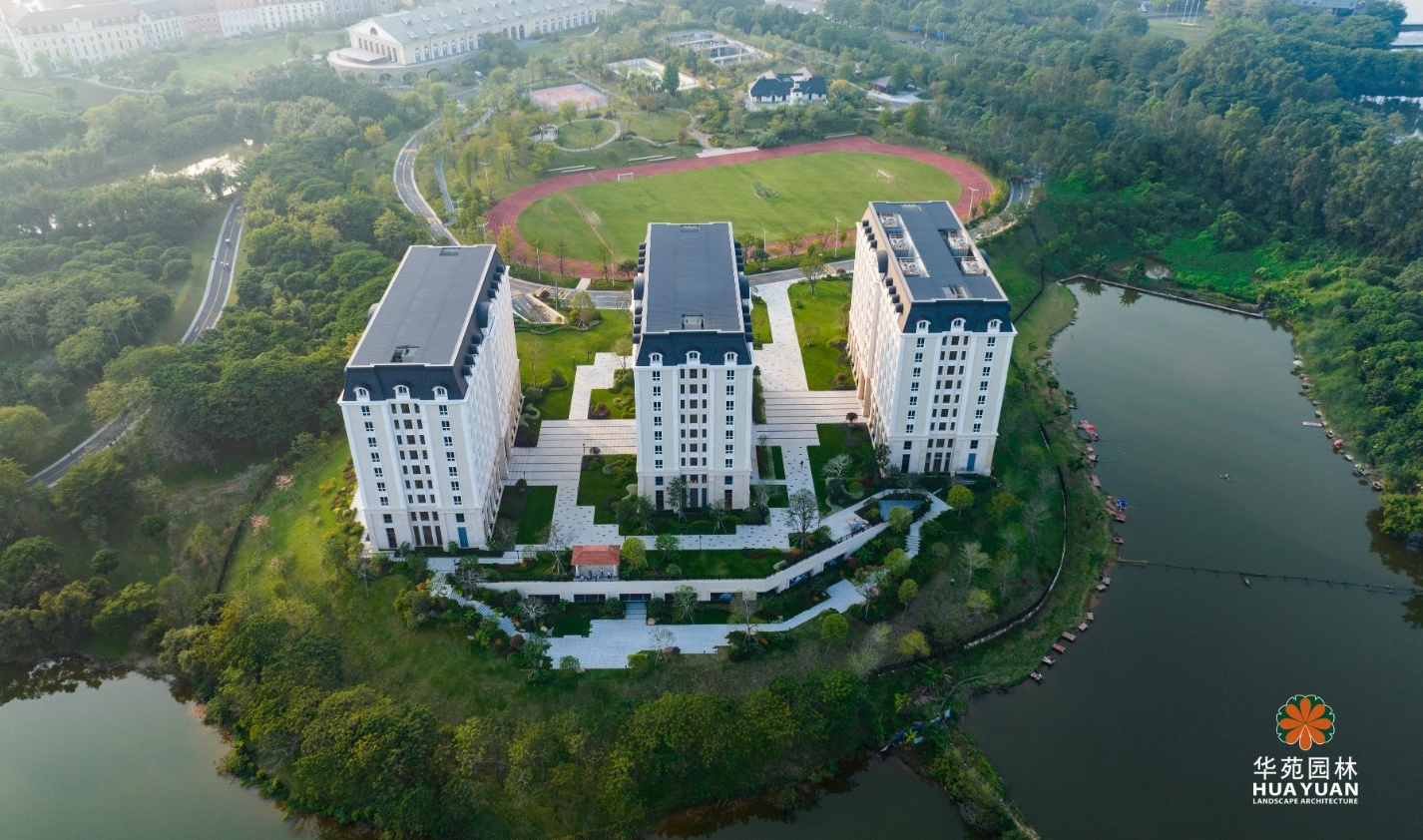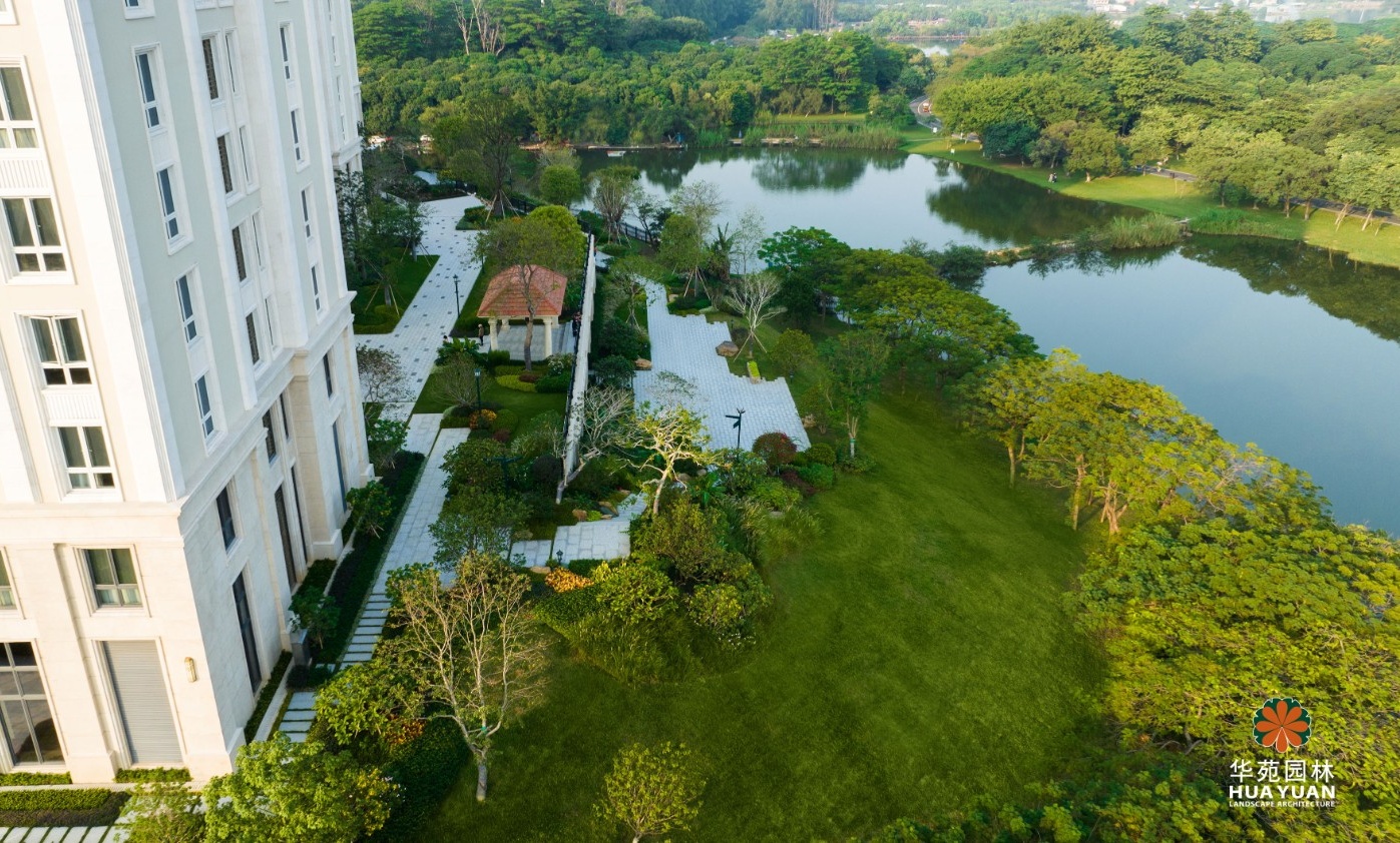 項目景觀充分融合松山湖的自然景觀,以高大喬木為綠化骨架,大面積的草坪為底,結(jié)合地形地貌,裝點多姿的花境與規(guī)整的地被,營造層次簡潔、景致怡人的生活氛圍。