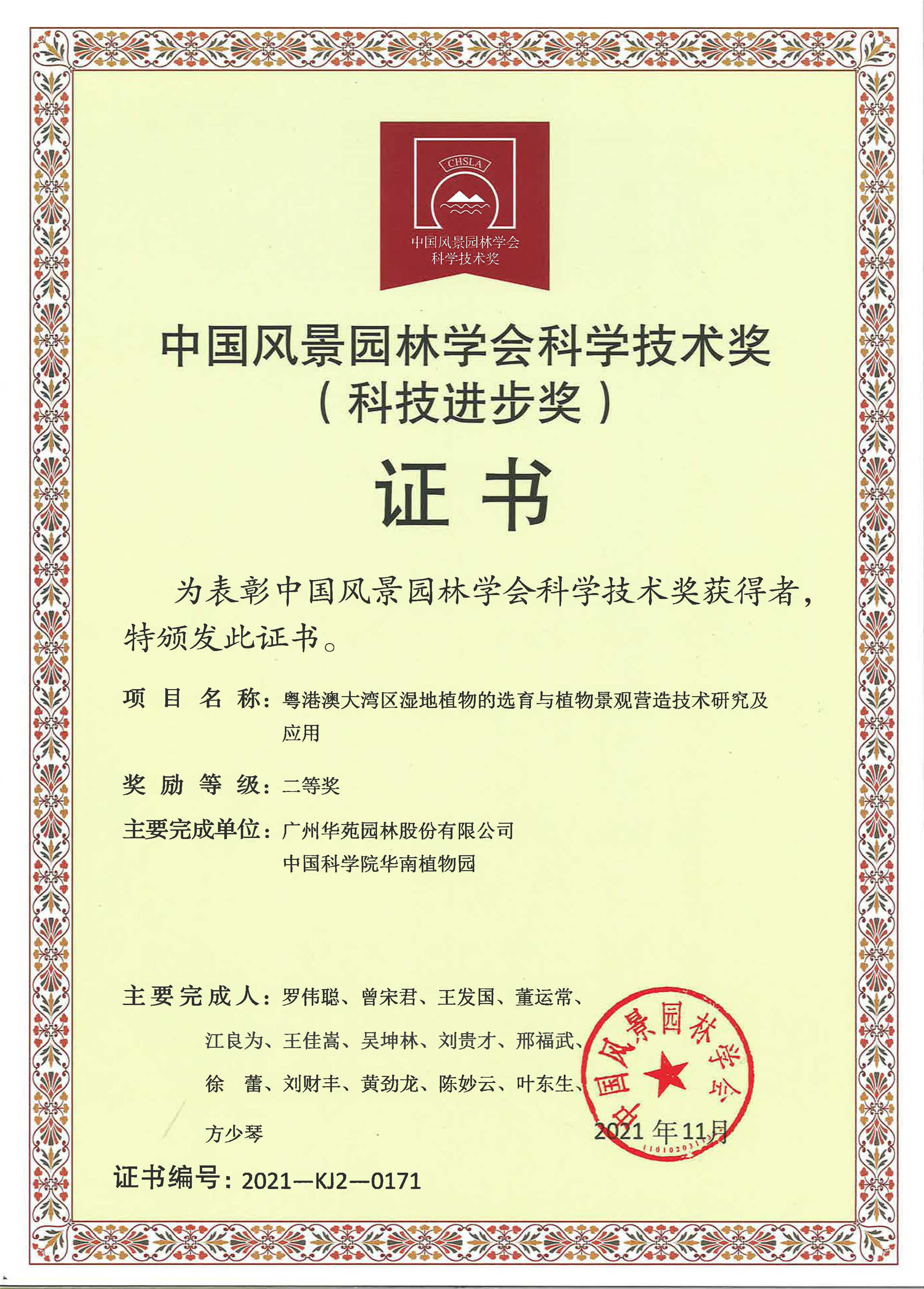 2021年中國風(fēng)景園林學(xué)會(huì)科技進(jìn)步獎(jiǎng)二等獎(jiǎng)——粵港澳大灣區(qū)濕地植物的選育與植物景觀營造技術(shù)研究及應(yīng)用