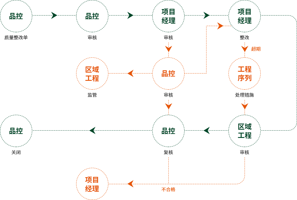 在項(xiàng)目實(shí)施過(guò)程中,品控部根據(jù)施工工藝標(biāo)準(zhǔn)、技術(shù)紅線、四大通病等管理要求,對(duì)項(xiàng)目進(jìn) 行月度巡檢、月度測(cè)評(píng)、完工測(cè)評(píng)和養(yǎng)護(hù)巡檢等全方位、多層次的監(jiān)督,以“發(fā)現(xiàn)-跟蹤-解 決”的閉環(huán)式管理方式及時(shí)發(fā)現(xiàn)和處理各種工程質(zhì)量問(wèn)題,確保工程項(xiàng)目保質(zhì)保量的完成。