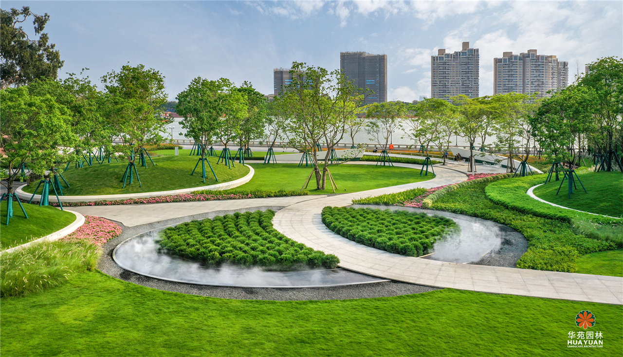 展示區(qū)景觀以現(xiàn)代、簡約的格調(diào),利用圓潤流暢的弧形線條,起伏有致的微地形及豐富多樣的綠植,融入珠江江景,打造敞闊、舒適的濱江園景,為繁華之中的生活賦予深層次的內(nèi)涵。