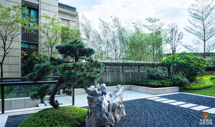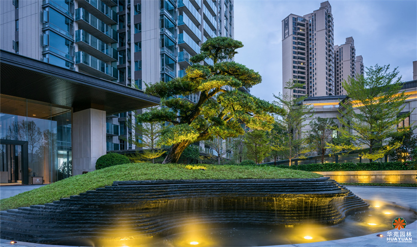 保利地產(chǎn)在清遠(yuǎn)打造的首個(gè)“天”字系濱江豪宅項(xiàng)目。寬窄不一、弧度各異的十九層跌級(jí)水景,與橫斜逸出的羅漢松,展現(xiàn)優(yōu)雅的迎客之態(tài);造型黑松孤植于黑色礫石中,展現(xiàn)東方意趣;設(shè)置四層弧線(xiàn)各異的疊級(jí)湖底的人工湖、雅致婉約的拱橋、頗具氣勢(shì)的假山水幕,共同打造出大氣典雅的府邸宅院景觀(guān)。