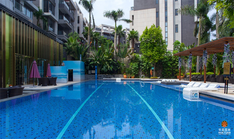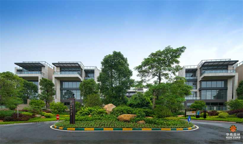 結(jié)合項目建筑群的旗艦形態(tài),融合當(dāng)?shù)鬲氂械淖匀?、人文元素,以黑、白、灰為硬景主調(diào),使用不同的主題水景、景觀小品等處理景觀節(jié)點,搭配多元化的綠植配置,呈現(xiàn)出簡約、現(xiàn)代的景觀格調(diào)。
