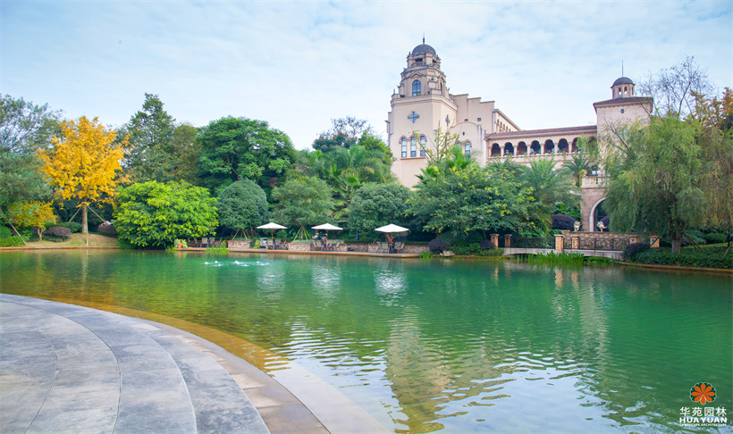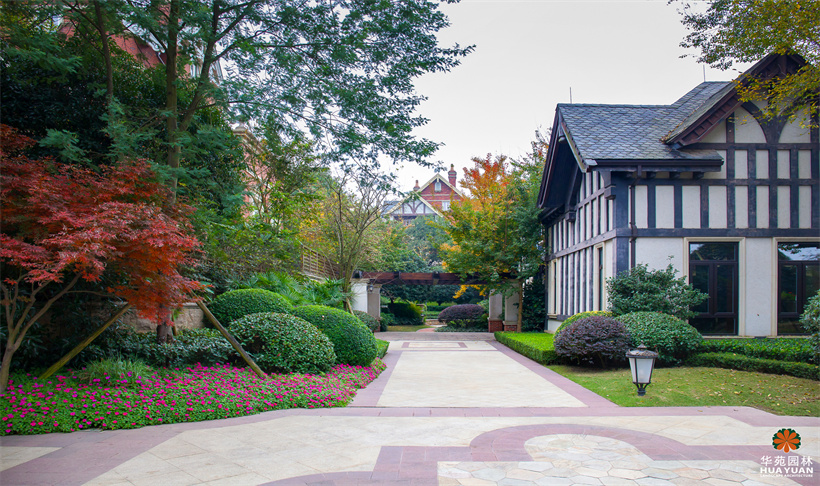 擁有稀缺的半山原生坡嶺,自然環(huán)境優(yōu)美,在保留原生態(tài)山地地形地貌的前提下,通過英式皇家園林體系原則,使樹叢草地與高低起伏的地塊相融合,利用植物的不同層次、色彩,將整個園林與建筑整體相融合,演繹出維多利亞時期的英式山地莊園格調。