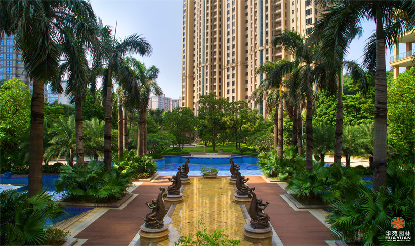 整體園林景觀采用新古典主義的風格,以規(guī)整流暢又富有韻律的線條打造出對稱式的軸線空間景觀,使整個園林布局條理清晰、主次分明。逾2萬平方米的中央園林景觀,運用三重垂直園林體系,構(gòu)建出高雅華麗、氣勢雄偉的皇家園林風情。