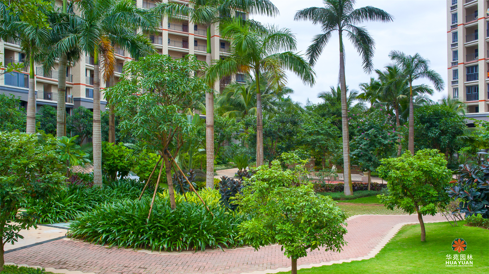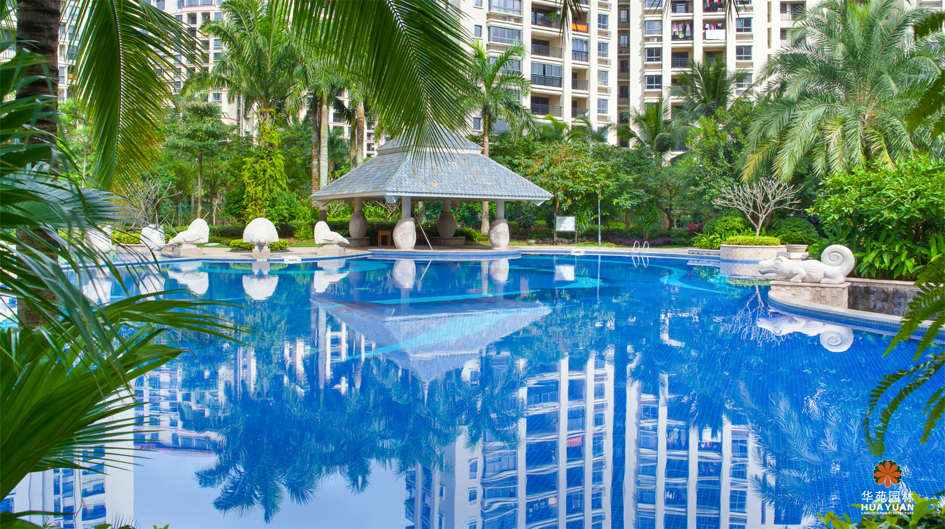 塑石假山群置于自然式水景之上,休憩涼亭的特色瓦頂、乳白色寶瓶柱身與磚紅的庭院燈、青翠的綠植,組合出一幅自然式風(fēng)情畫;池底,兩種不同明度的藍(lán)色馬賽克瓷磚鋪貼而成的圖案,充滿宗教神秘色彩的雕塑小品,造工細(xì)膩的砂巖浮雕,加上蓊郁蒼翠、層次豐富的綠植空間,渲染出濃郁的東南亞園林風(fēng)情。