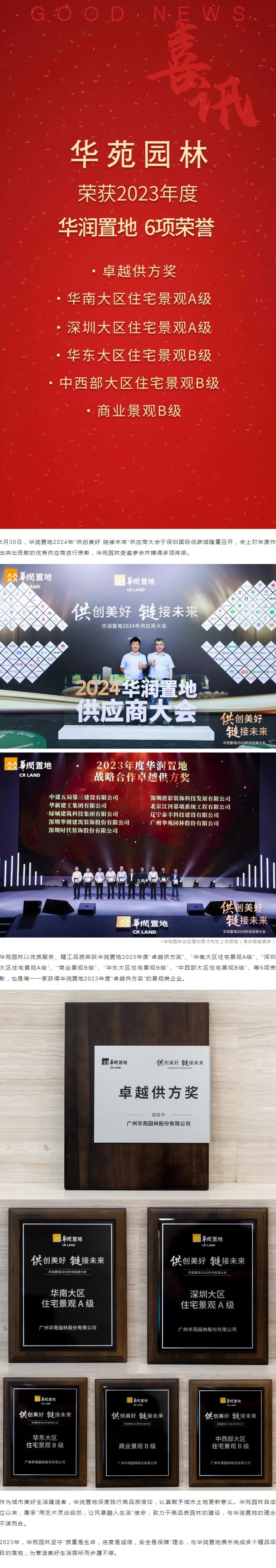 華苑園林榮獲華潤(rùn)置地卓越供方獎(jiǎng)等6項(xiàng)表彰丨合作精品項(xiàng)目盤點(diǎn)